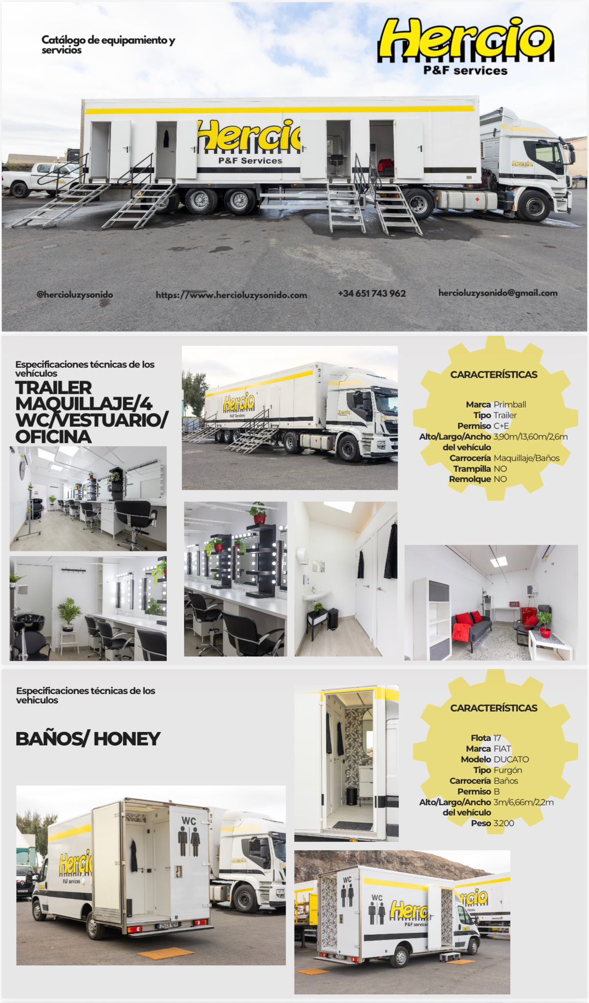 Servicio DE vehículos especiales y carrozados para producciones, todo tipo de medidas, cargas y tipos (vestuario, maquillaje, baños, producción, oficinas, cámara, eléctricos, carga general, atrezzos, decorados, taller móvil, pickup, remolques, trailers y tractoras grandes cargas, cestas, generadores silenciosos).